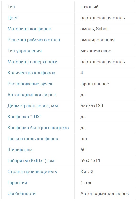Газ-контроль конфорок |