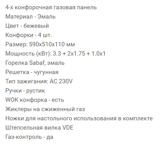 Всего конфорок |