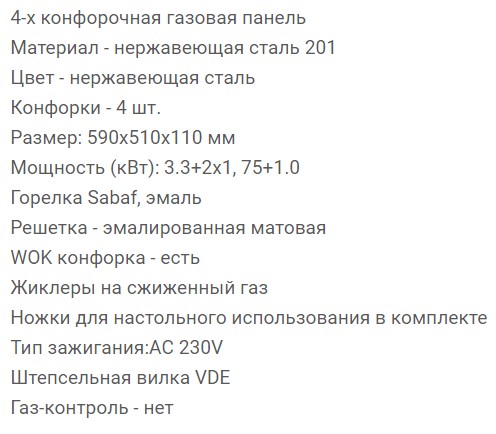 Газовая варочная панель RICCI (Риччи) HBS4510