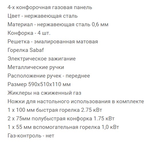 Всего конфорок |