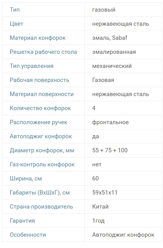 Газ-контроль конфорок |