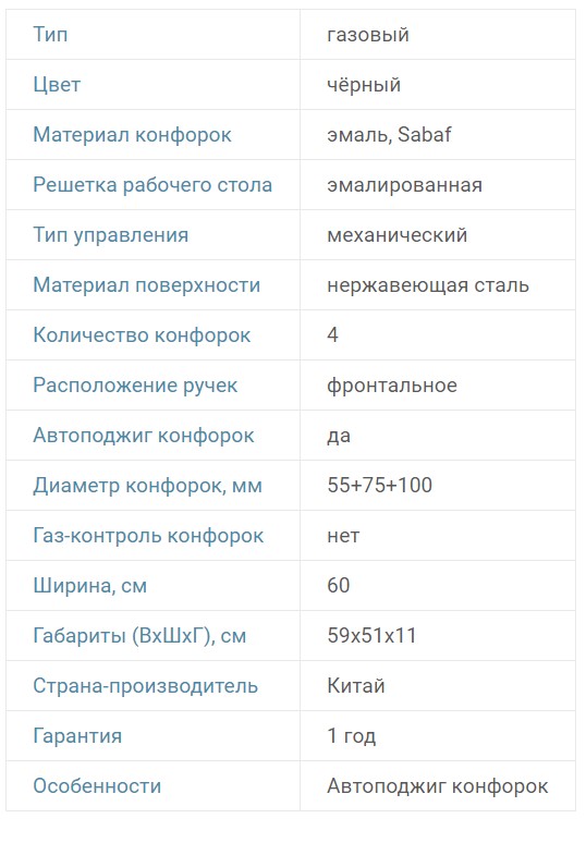 Газ-контроль конфорок |