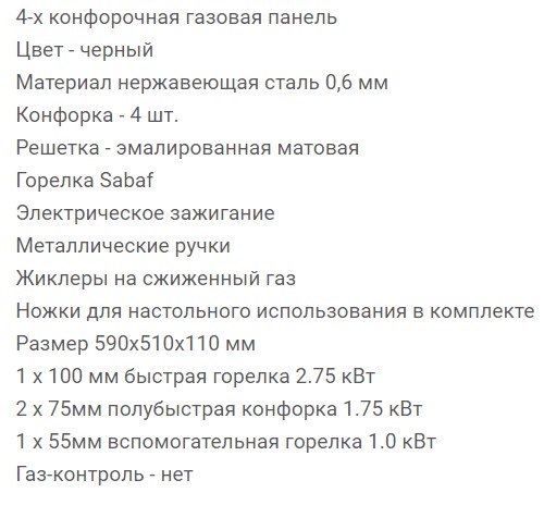 Всего конфорок |