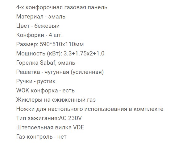 Всего конфорок |