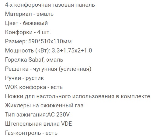 Всего конфорок |