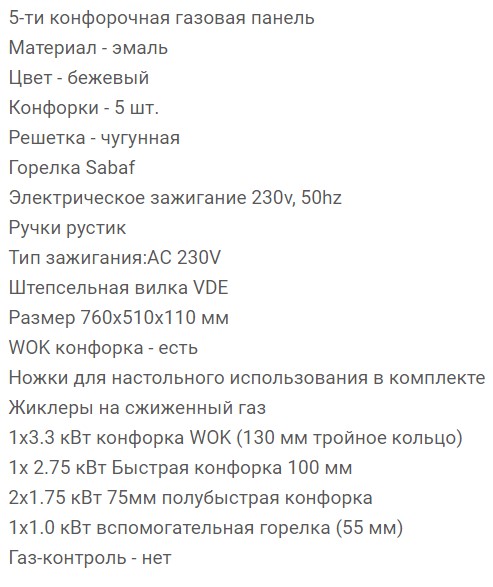 Всего конфорок |