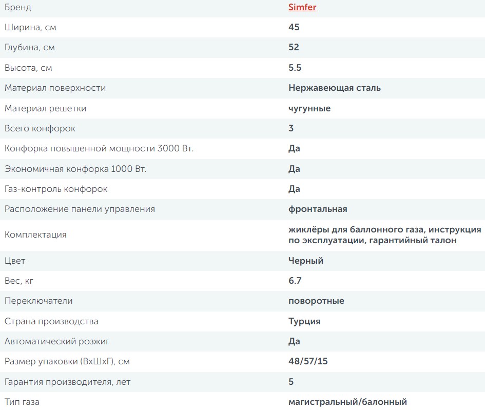 Газовая варочная панель Simfer (Симфер) H45V31B516