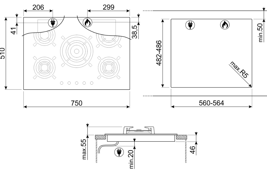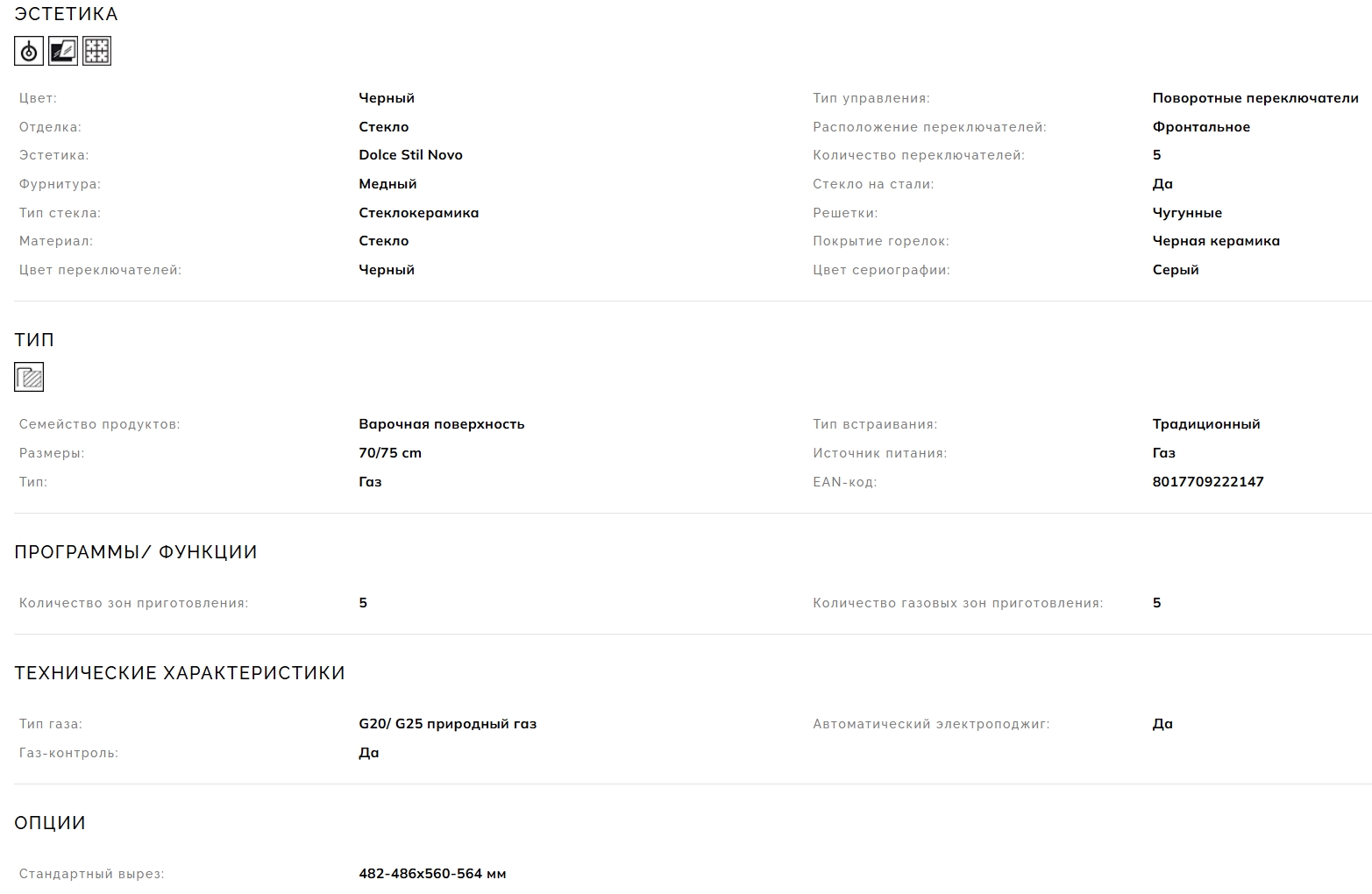 Газовая варочная панель Smeg (Смег) PV675CNR