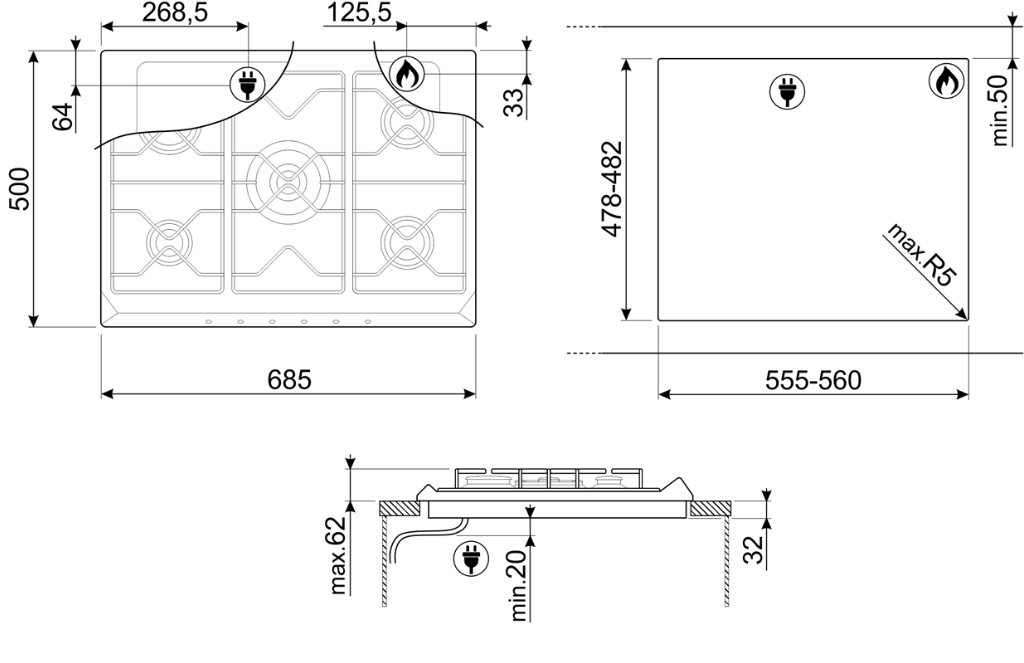 Ромбовидное расположение конфорок |
