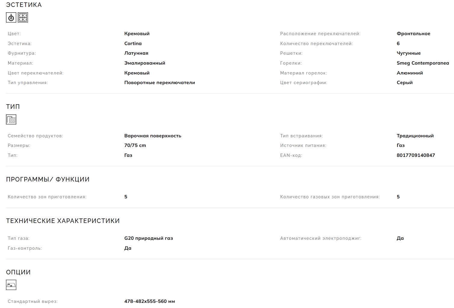 Газовая варочная панель Smeg (Смег) SR775PO
