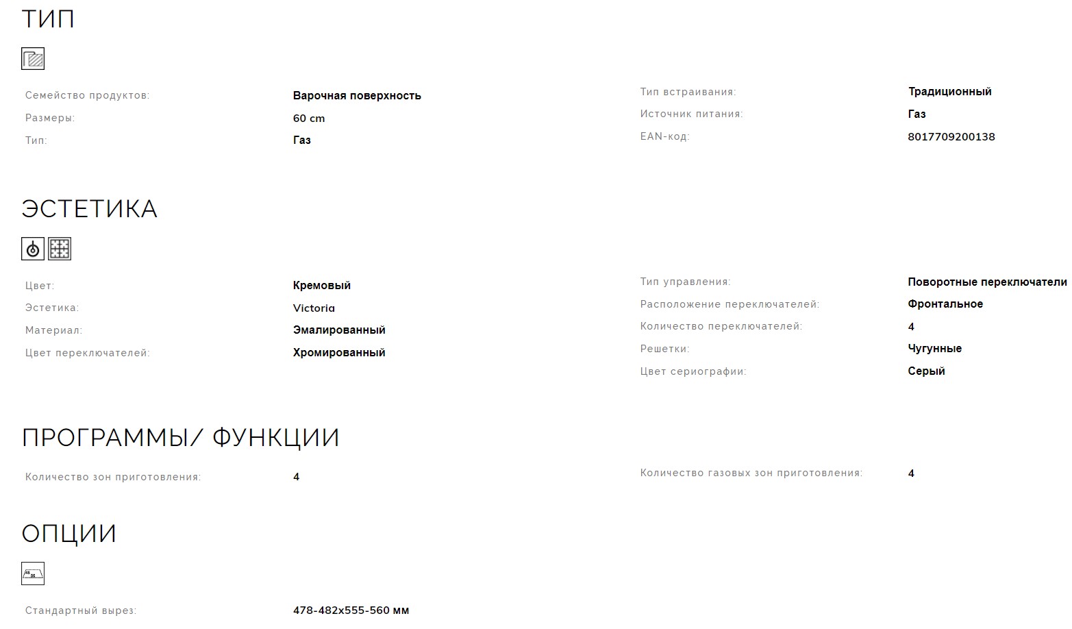 Всего конфорок |