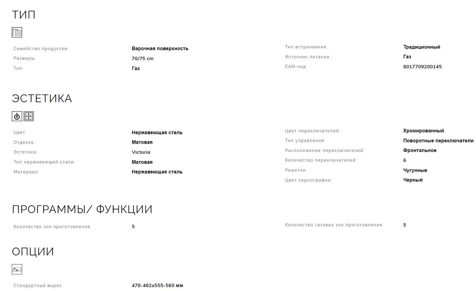 Газовая варочная панель Smeg (Смег) SR975XGH