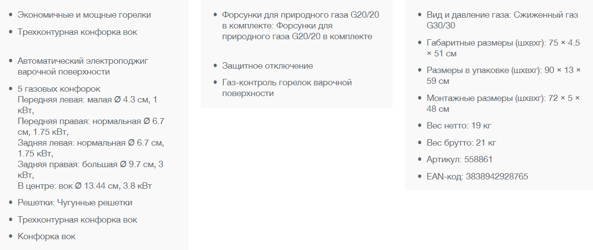 Ширина варочной