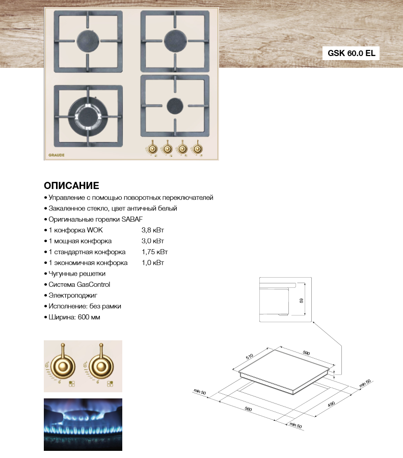 Газовая варочная панель GRAUDE (Грауде) GSK 60.0 EL