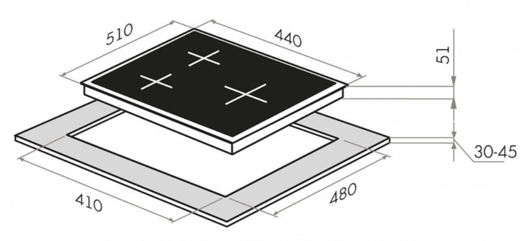 Ромбовидное расположение конфорок |