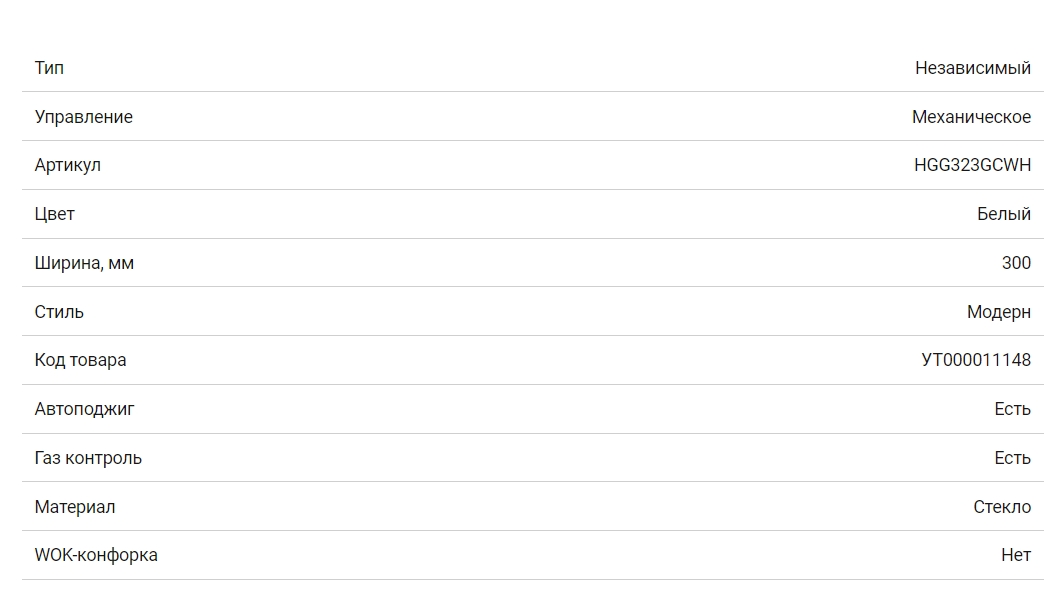 Газовая варочная панель HOMSair (ХОМСэйр) HGG323GCWH