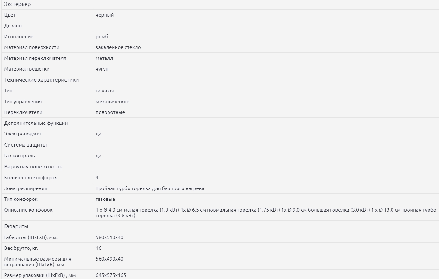 Газовая варочная панель Kaiser (Кайзер) KCG 6394 Turbo Romb