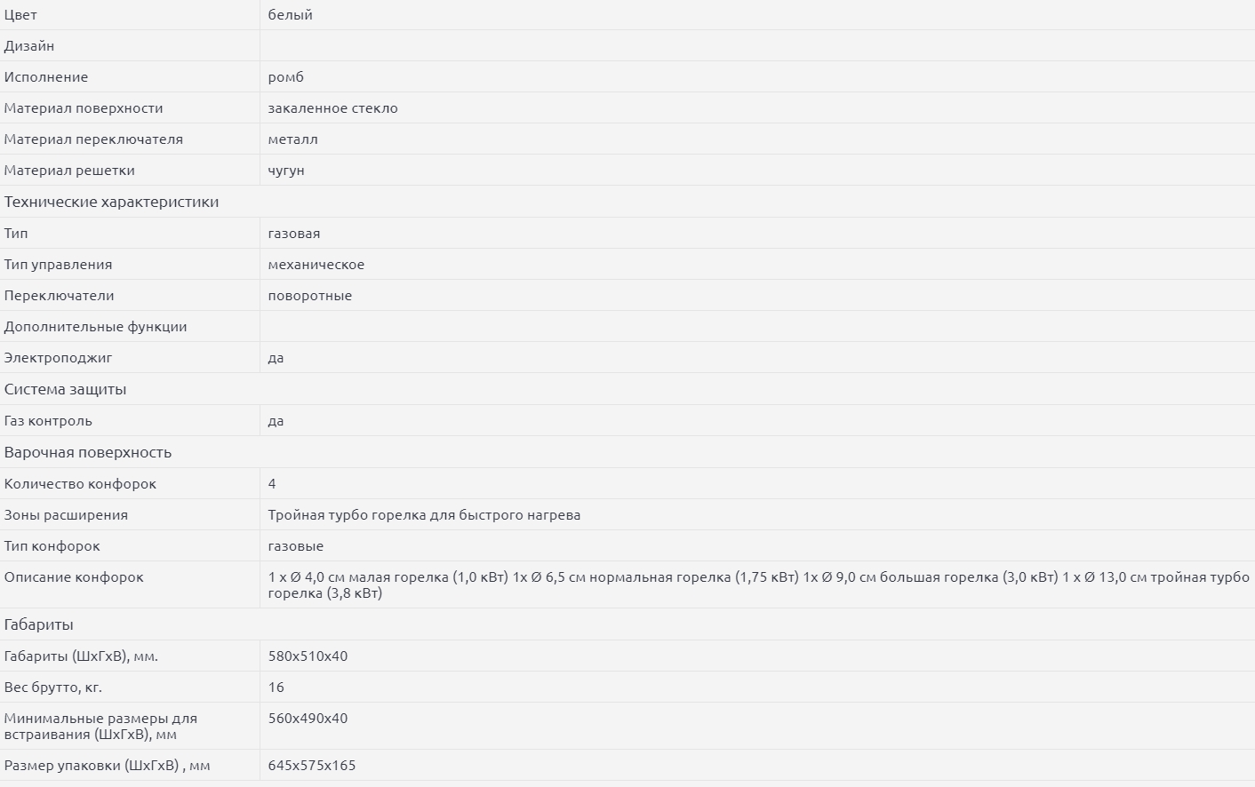Газовая варочная панель Kaiser (Кайзер) KCG 6394 W Turbo Romb