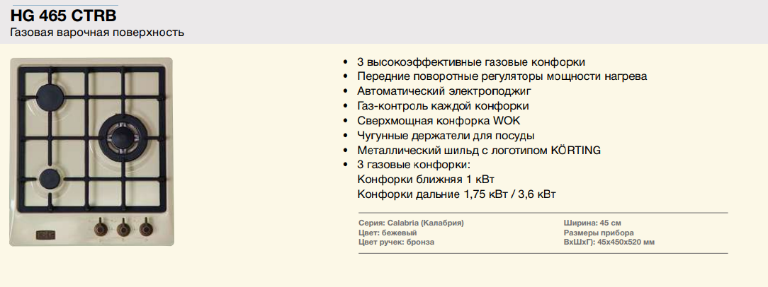 Газовая варочная панель Korting (Кёртинг) HG 465 CTRB