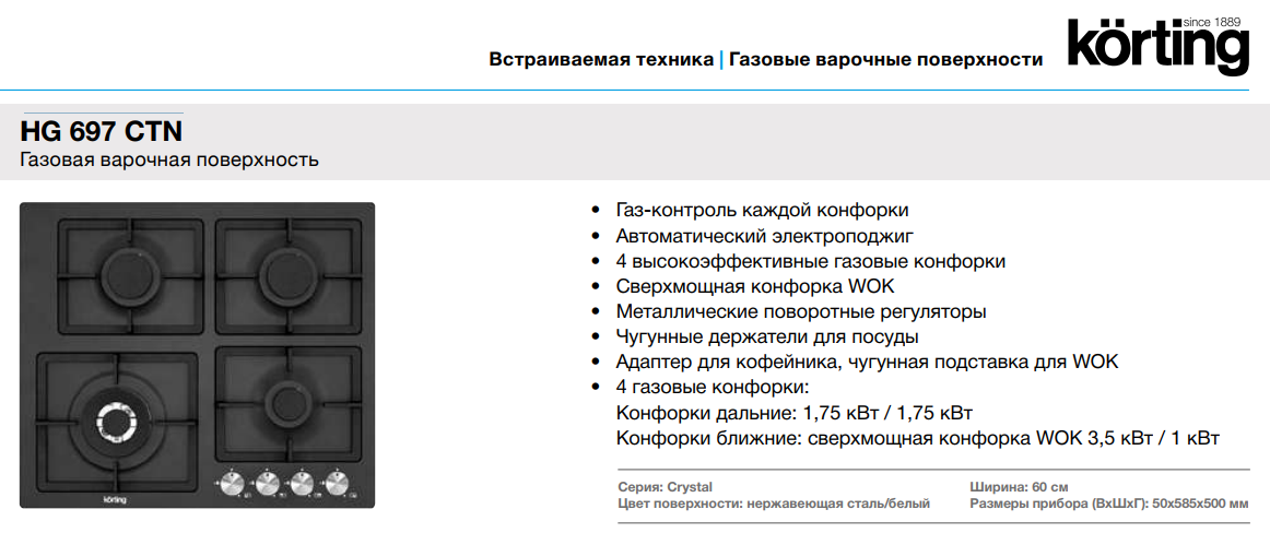 Газовая варочная панель Korting (Кёртинг) HG 697 CTN