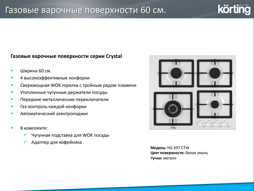 Газовая варочная панель Korting (Кёртинг) HG 697 CTW