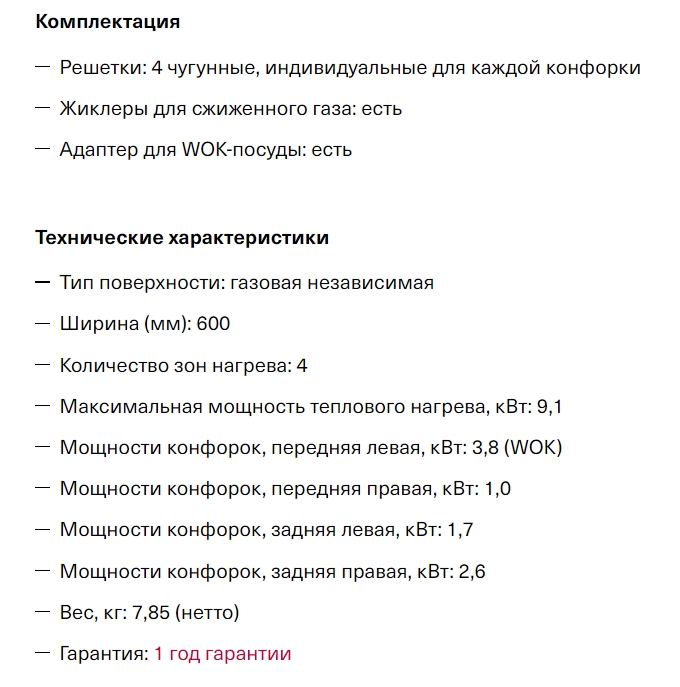 Всего конфорок |