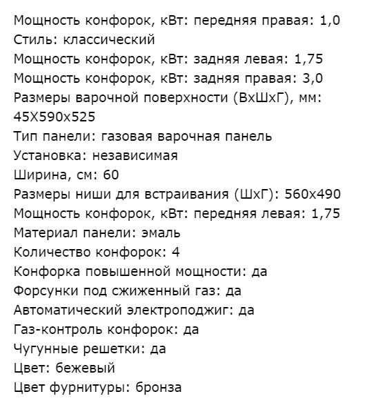 Панель конфорок |