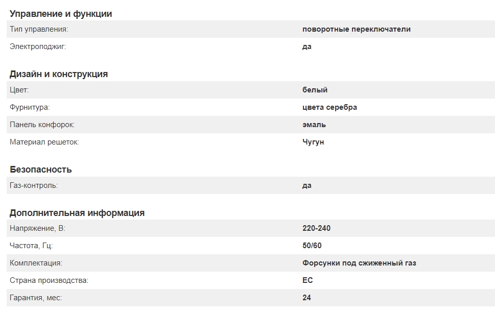 Газ-контроль конфорок |