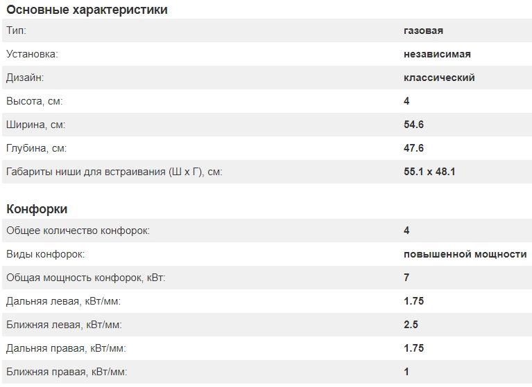Всего конфорок |