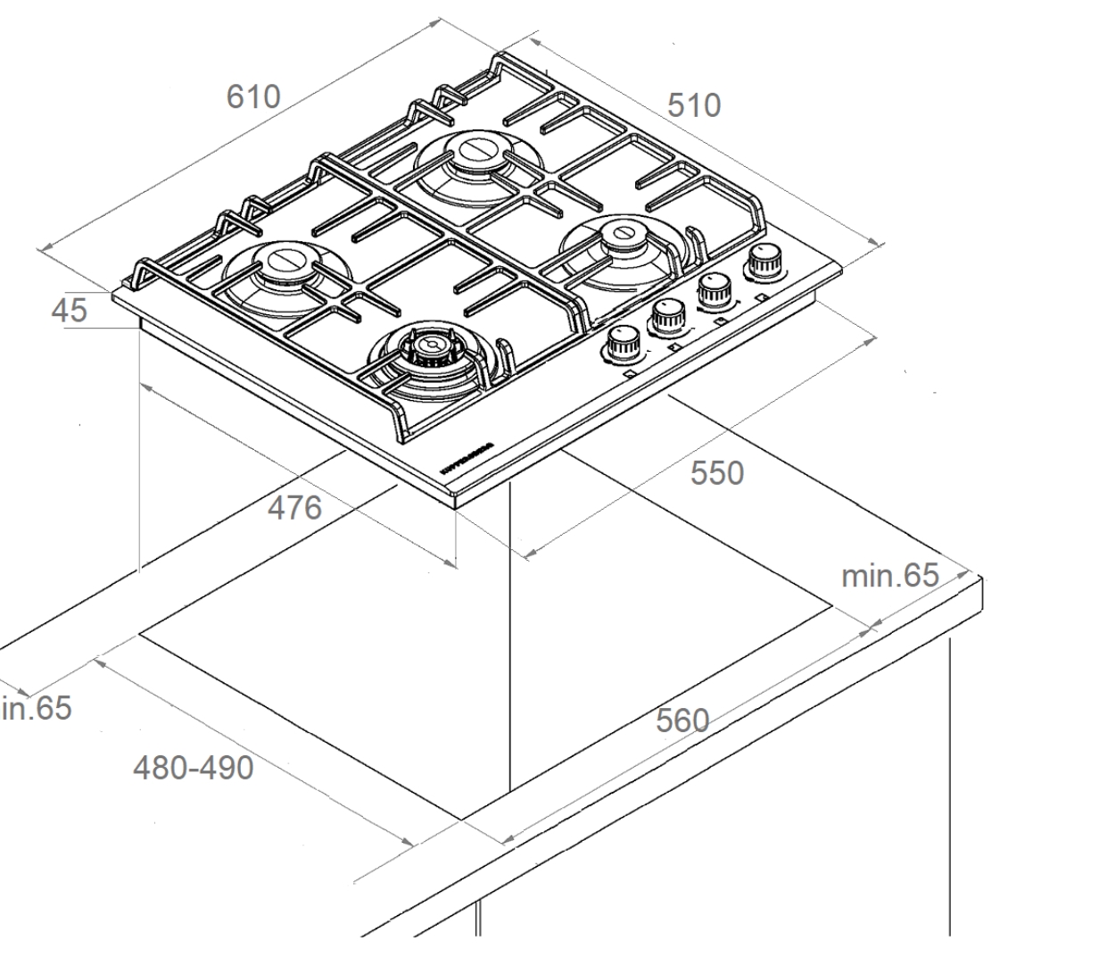 Ромбовидное расположение конфорок |