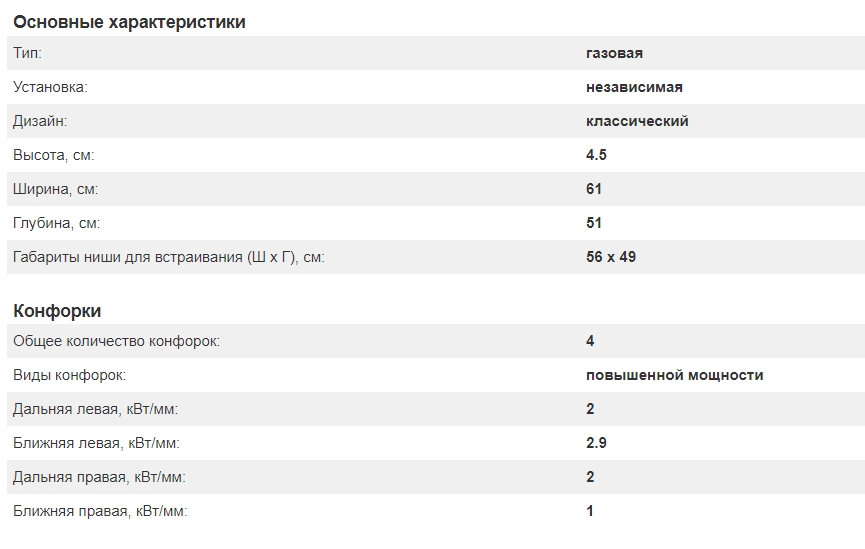 Всего конфорок |