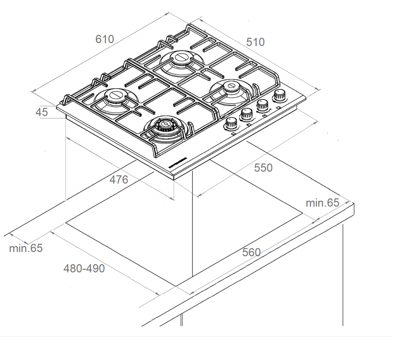 Ромбовидное расположение конфорок |