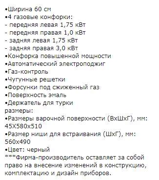 Всего конфорок |
