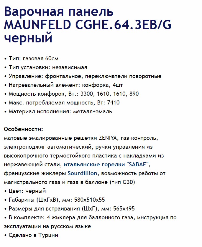 Газовая варочная панель MAUNFELD (Маунфилд) CGHE.64.3EB/G + ВИДЕО О ТОВАРЕ