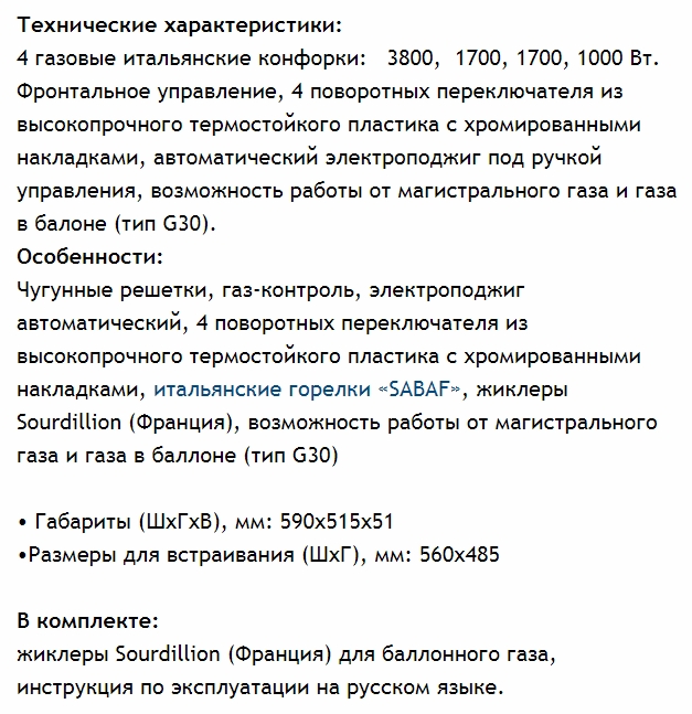 Газ-контроль конфорок |