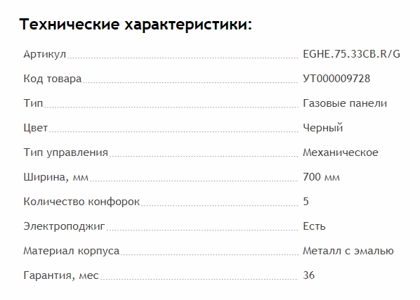 Ширина варочной