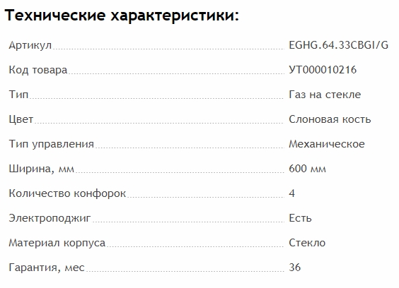 Ширина варочной