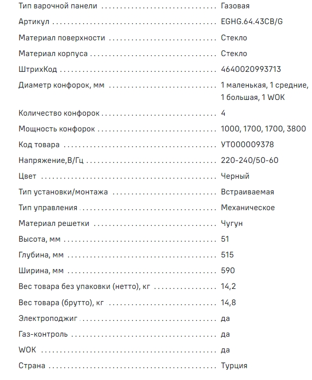 Газовая варочная панель MAUNFELD (Маунфилд) EGHG.64.43CB/G