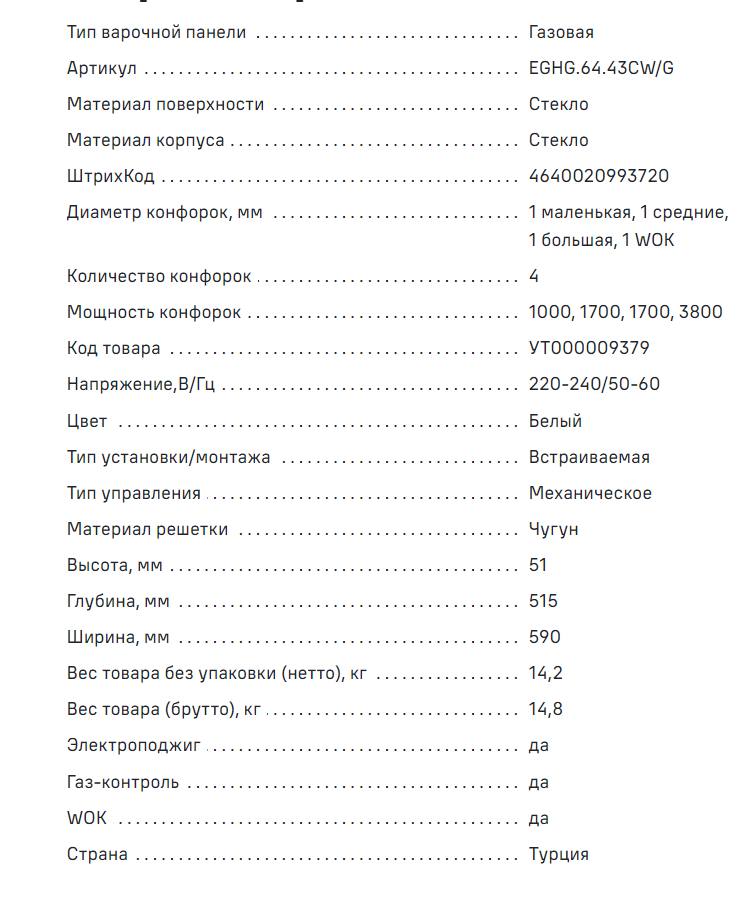 Газовая варочная панель MAUNFELD (Маунфилд) EGHG.64.43CW/G