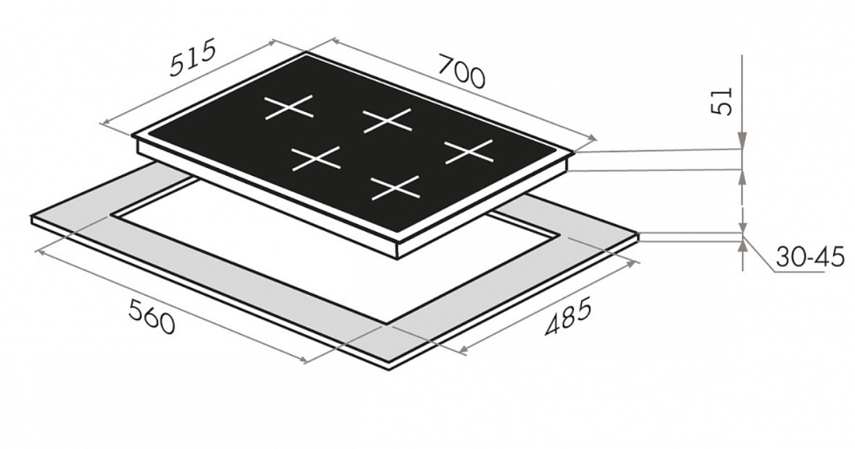 Ширина варочной поверхности |