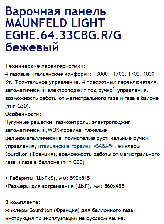 В продаже газовая варочная панель MAUNFELD (Маунфилд) EGHE.64.33CBG.R/G. В нашем интернет-магазине