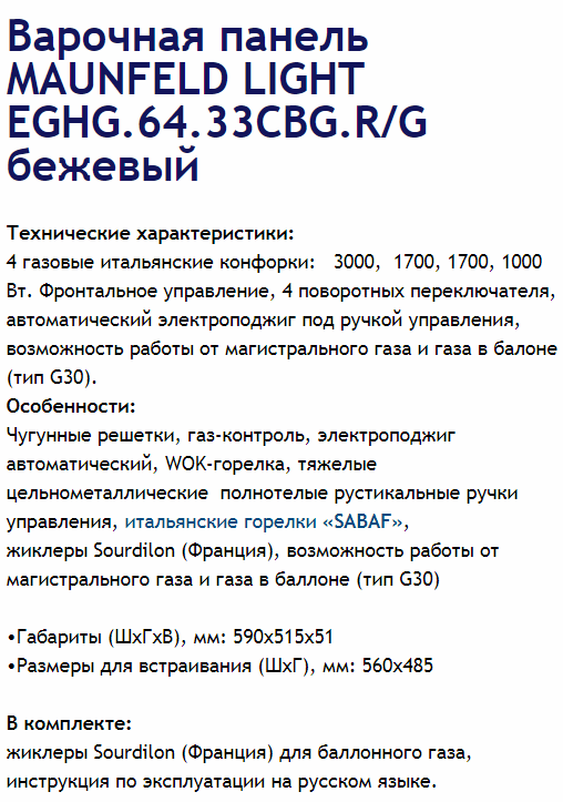 Газовая варочная панель MAUNFELD (Маунфилд) EGHG.64.33CBG.R/G бежевый