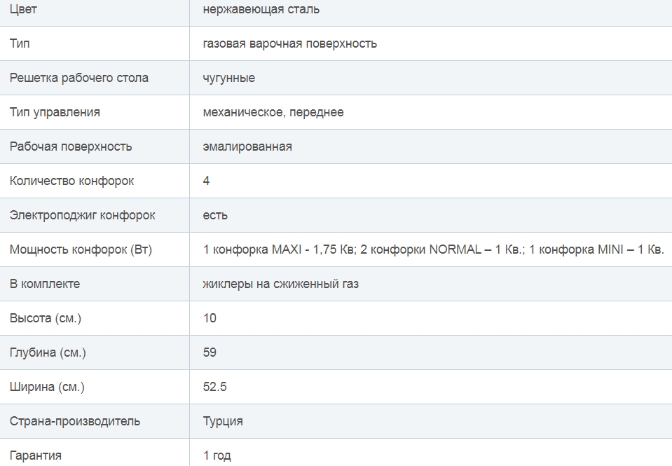 Всего конфорок |
