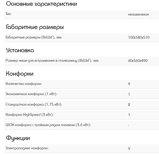 Всего конфорок |