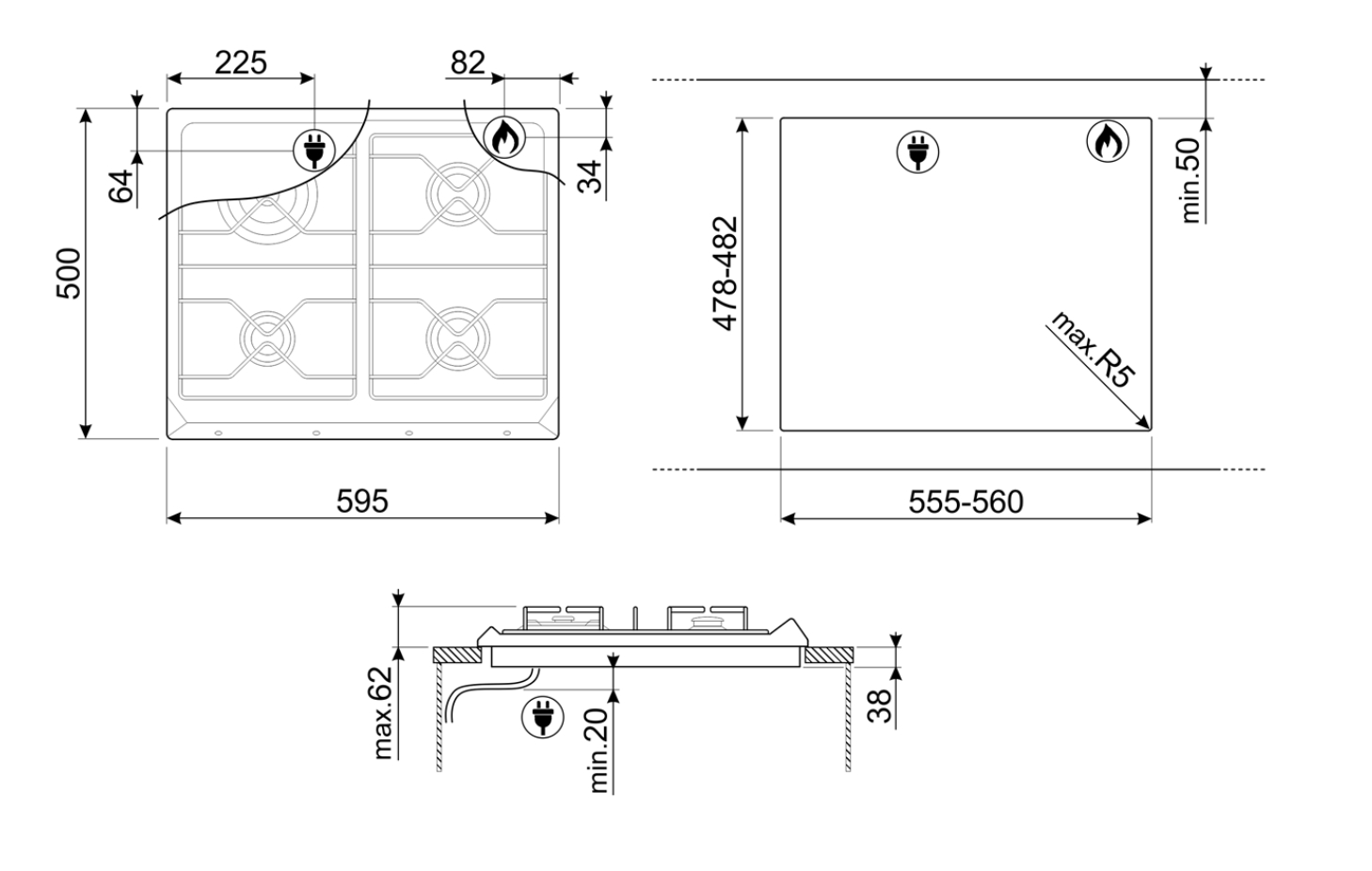 Газовая варочная панель Smeg (Смег) SRV864POGH