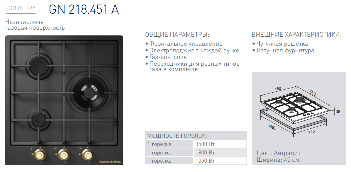 Газовая варочная панель Zigmund-Shtain (Зигмунд-Штайн) GN 218.451 A + ВИДЕО О ТОВАРЕ