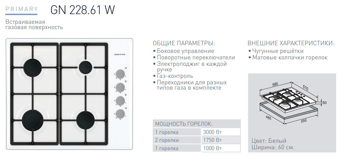 Газовая варочная панель Zigmund-Shtain (Зигмунд-Штайн) GN 228.61 W