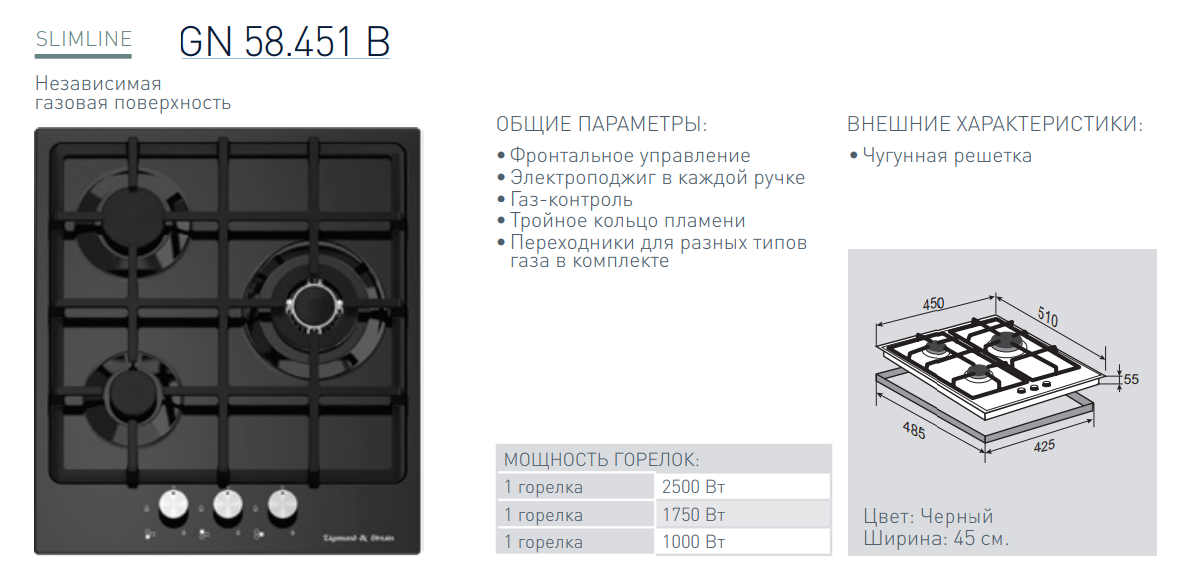 Газовая варочная панель Zigmund-Shtain (Зигмунд-Штайн) GN 58.451 B