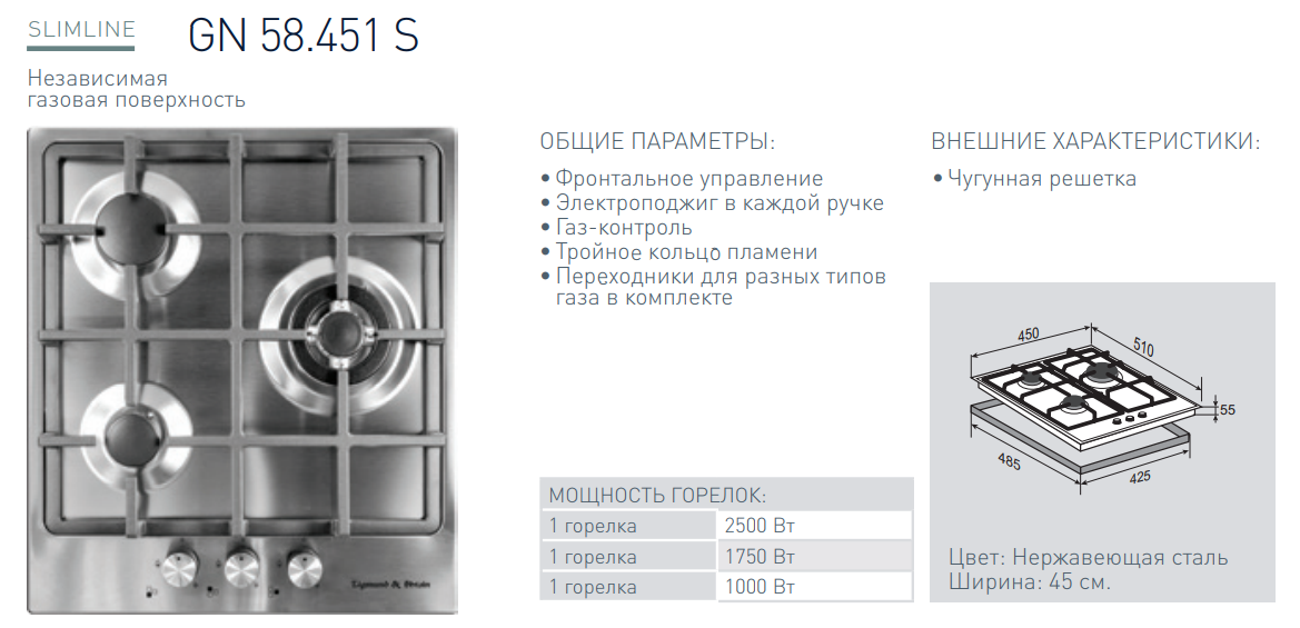 Газовая варочная панель Zigmund-Shtain (Зигмунд-Штайн) GN 58.451 S