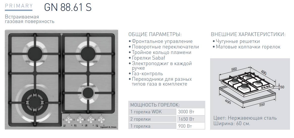 Газовая варочная панель Zigmund-Shtain (Зигмунд-Штайн) GN 88.61 S + ВИДЕО О ТОВАРЕ